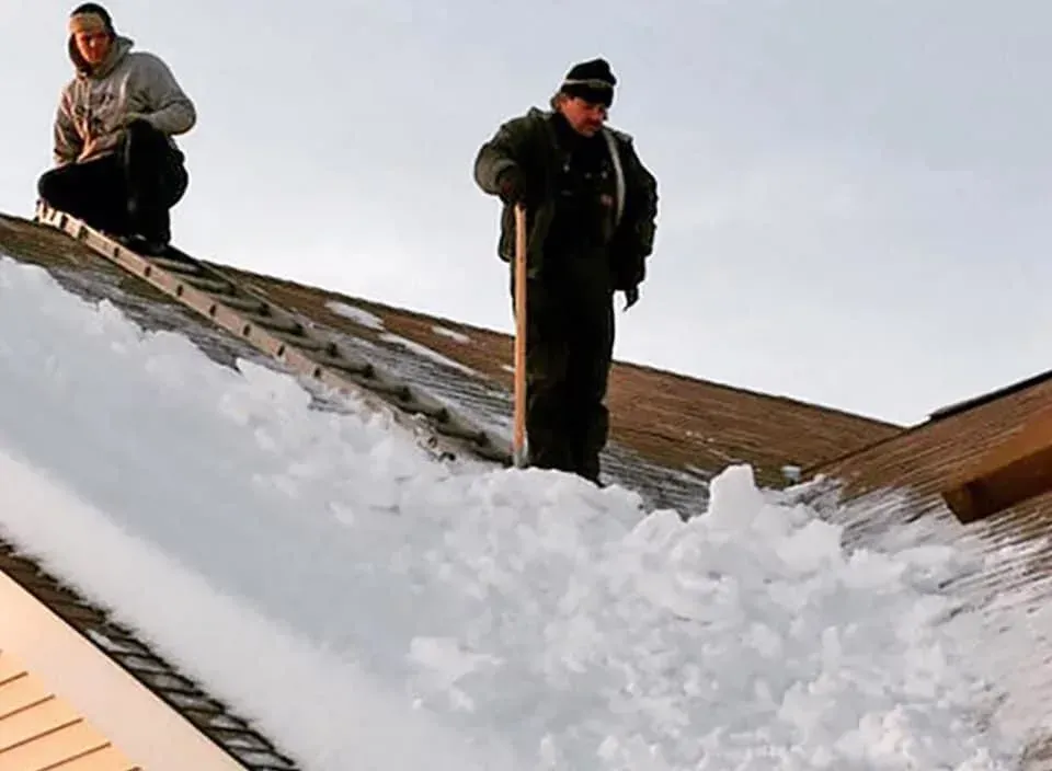 - Remove snow safely from the roof edge when possible, without damaging shingles