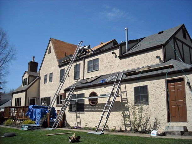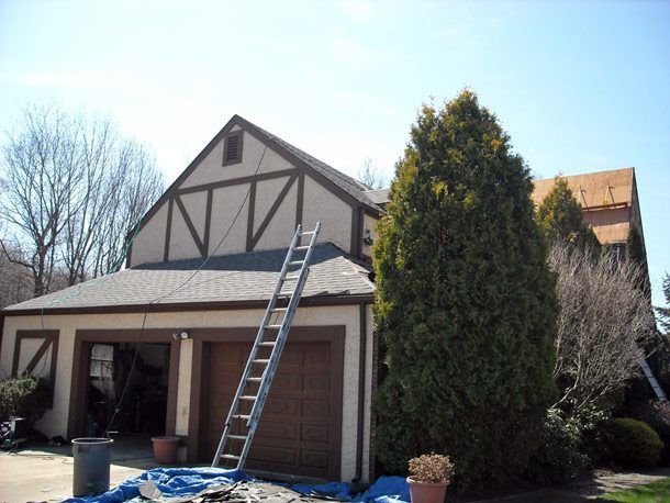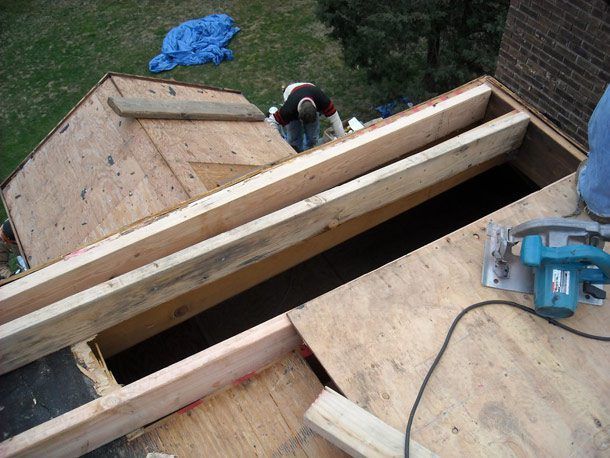 Removed old roofing & installed a Tamko Dimensional roof on most of the house. Installed four new Velux fixed skylights. Two new Pro-3 roof fans. There was an approximate 15ft x 15ft flat roof on the house not visible from the ground. This had to be changed to a ” Low-sloped” roof so we could install a glue down rubber roof & Guarantee against future leaks. New rafters/plywood was installed. Then a full coat of ice & water shield before the final glue down roof.